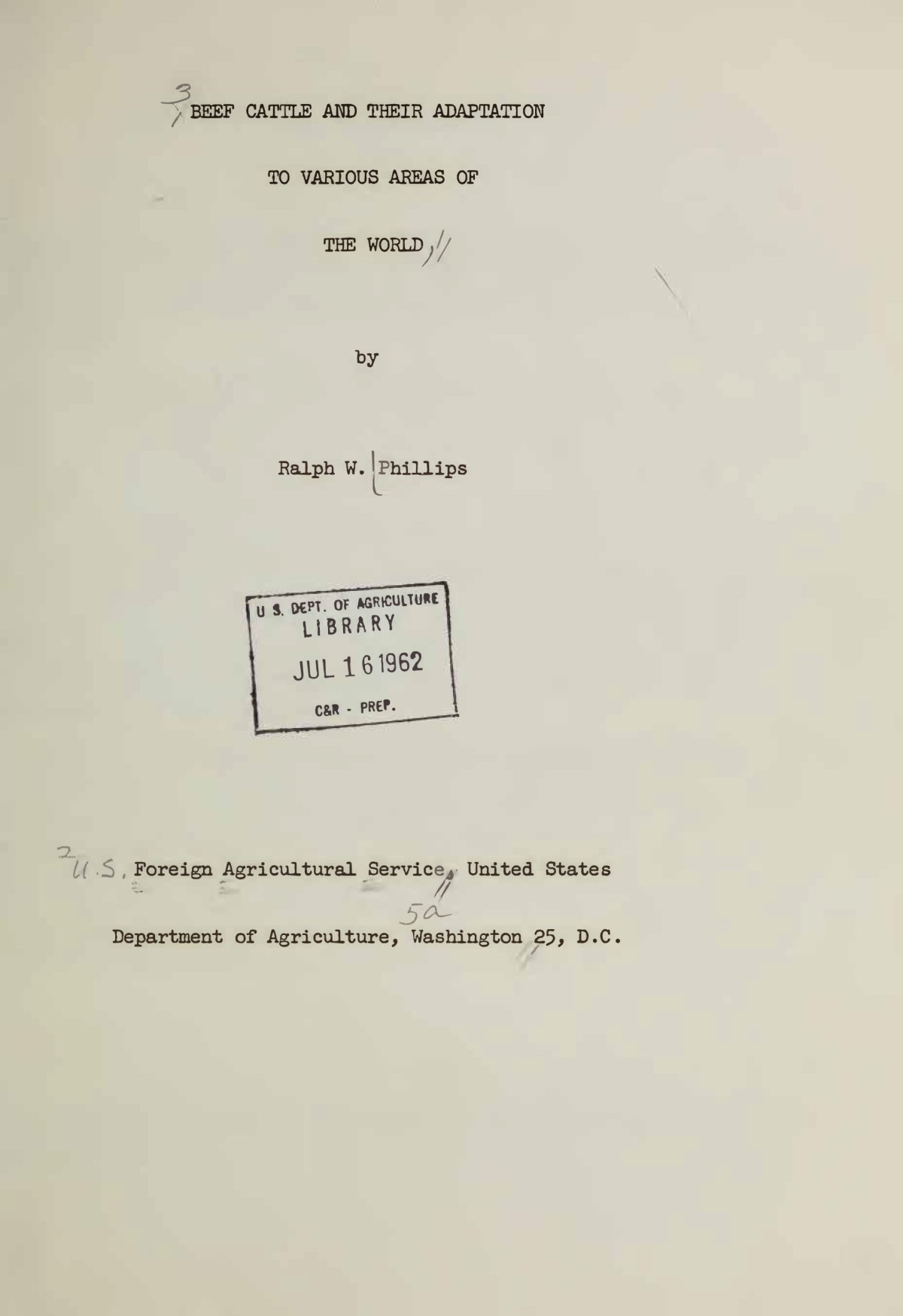PHILLIPS, R. (1962) Beef Cattle and their Adaptation to various areas of the World. United states Department of Agriculture Library